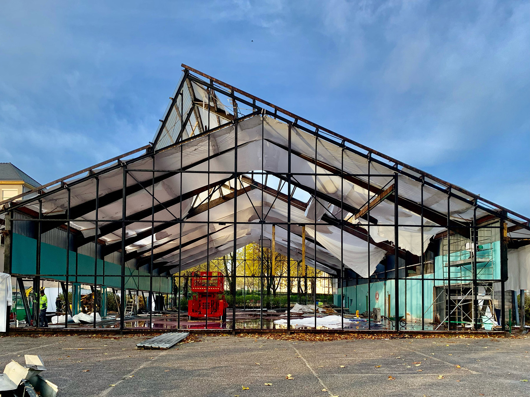 Le programme consiste en une réhabilitation fonctionnelle et une rénovation thermique du clos couvert : structure et plancher bas du gymnase conservé (hors zone vestiaires), réfection complète des élévations et des toitures.